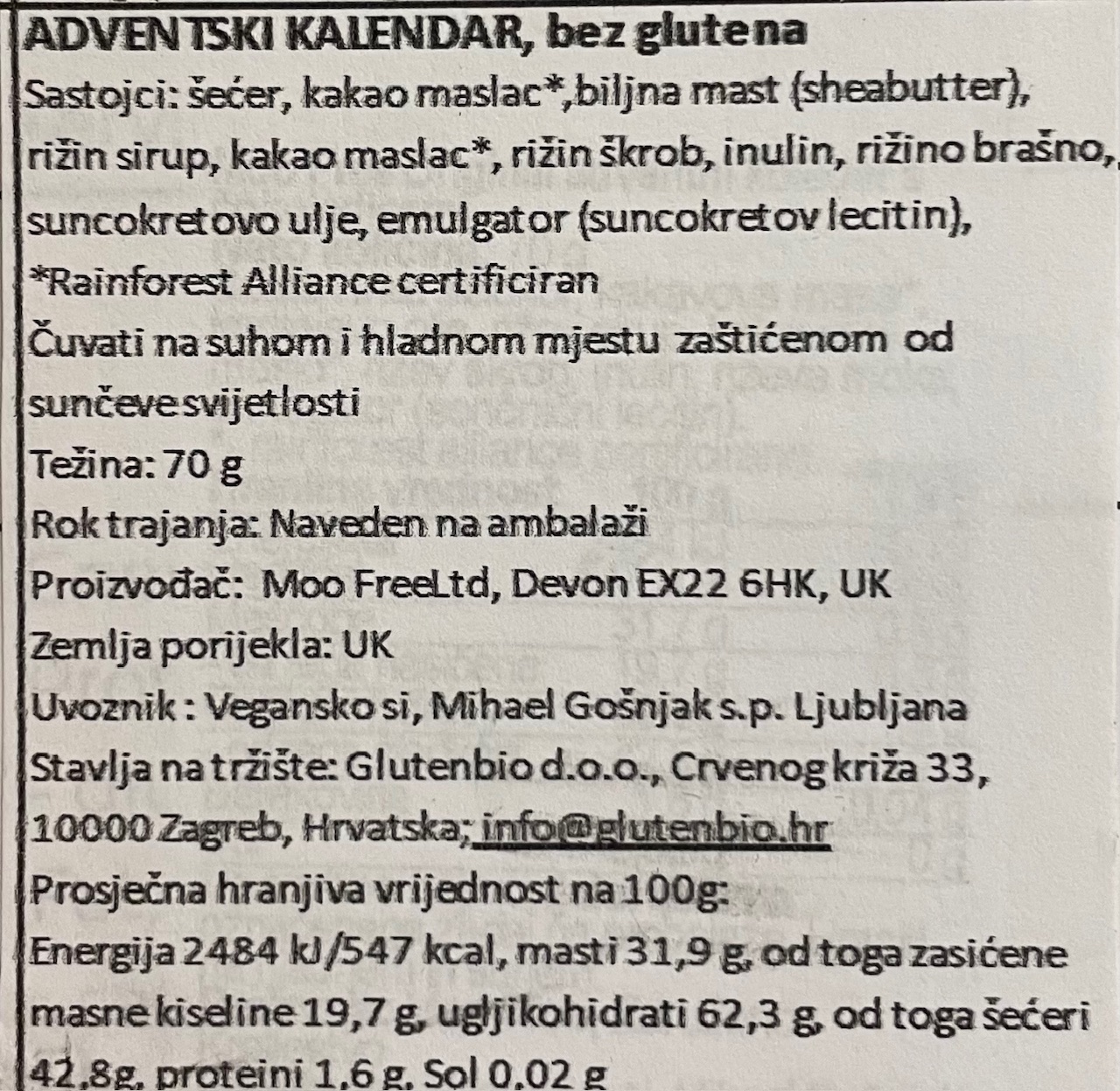 Adventski kalendar – čokolada / bez glutena